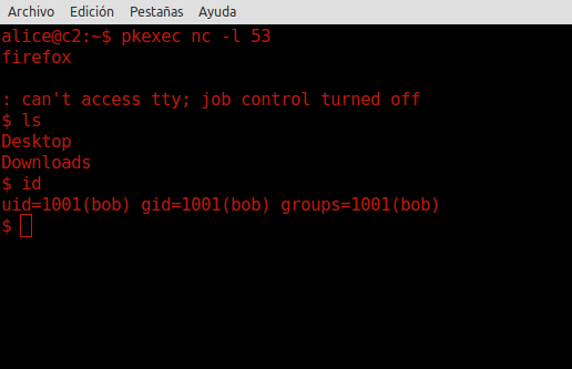 When any user executes the Firefox, a reverse shell will be invoked. At this time all data of the user is deciphered, allowing us to steal any kind of information of the user. The following picture, shows how the user Bob (the target) is using the Firefox and how the user Alice (the attacker) has full access to Bob's data.
