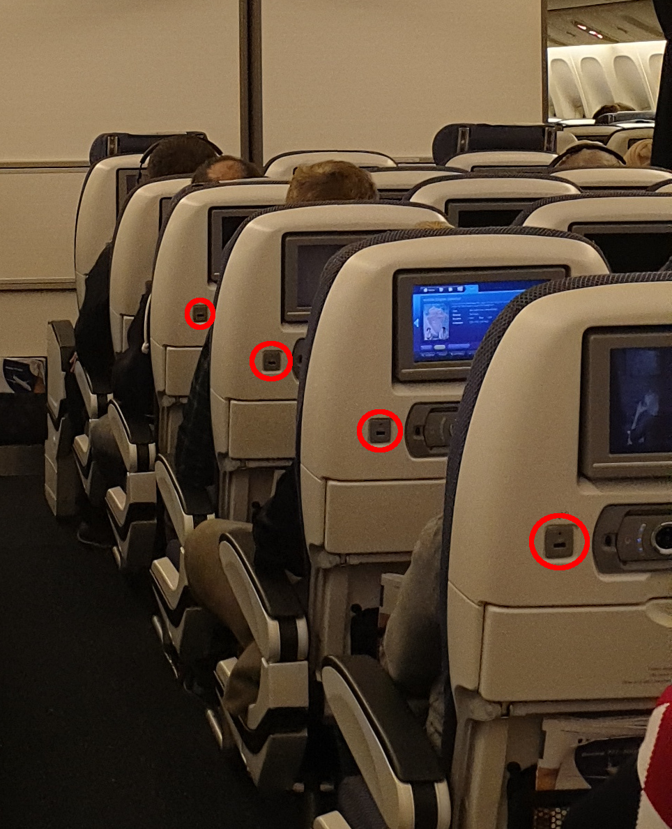 | USB sockets: Boeing 777-36N(ER) operated by British Airways. |